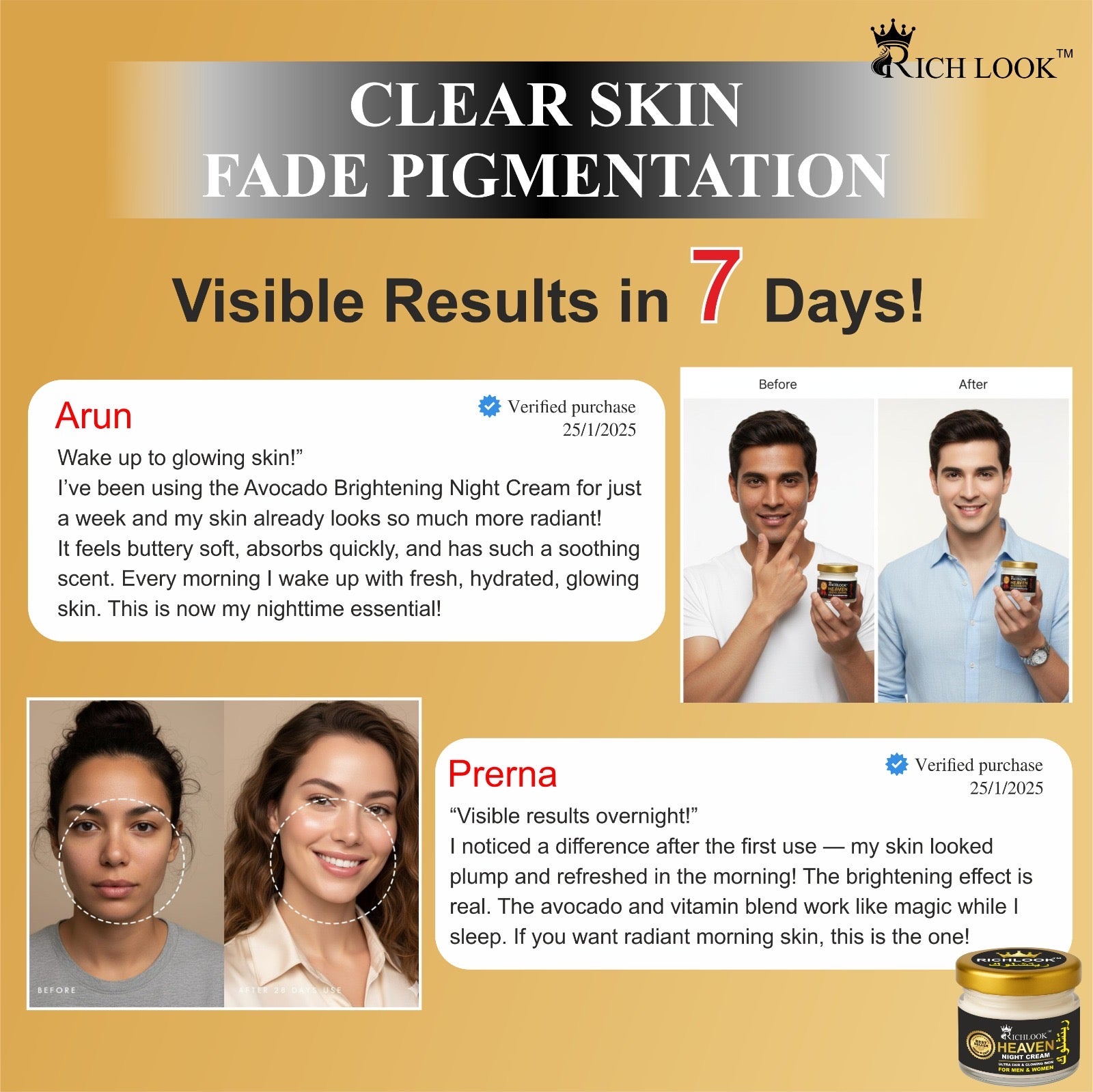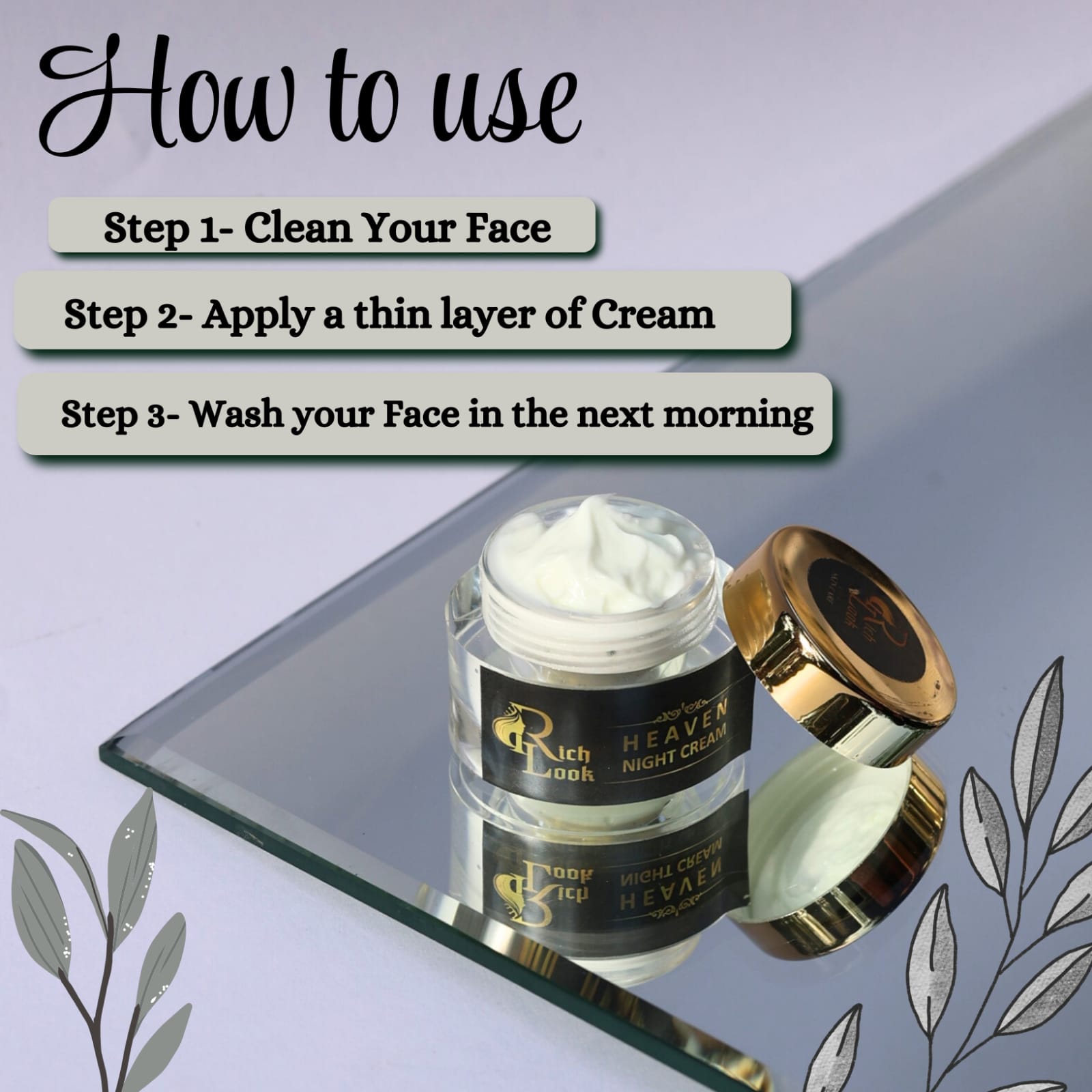 Apply Glowing Night Cream (thin layer) in the night, wash it next morning.